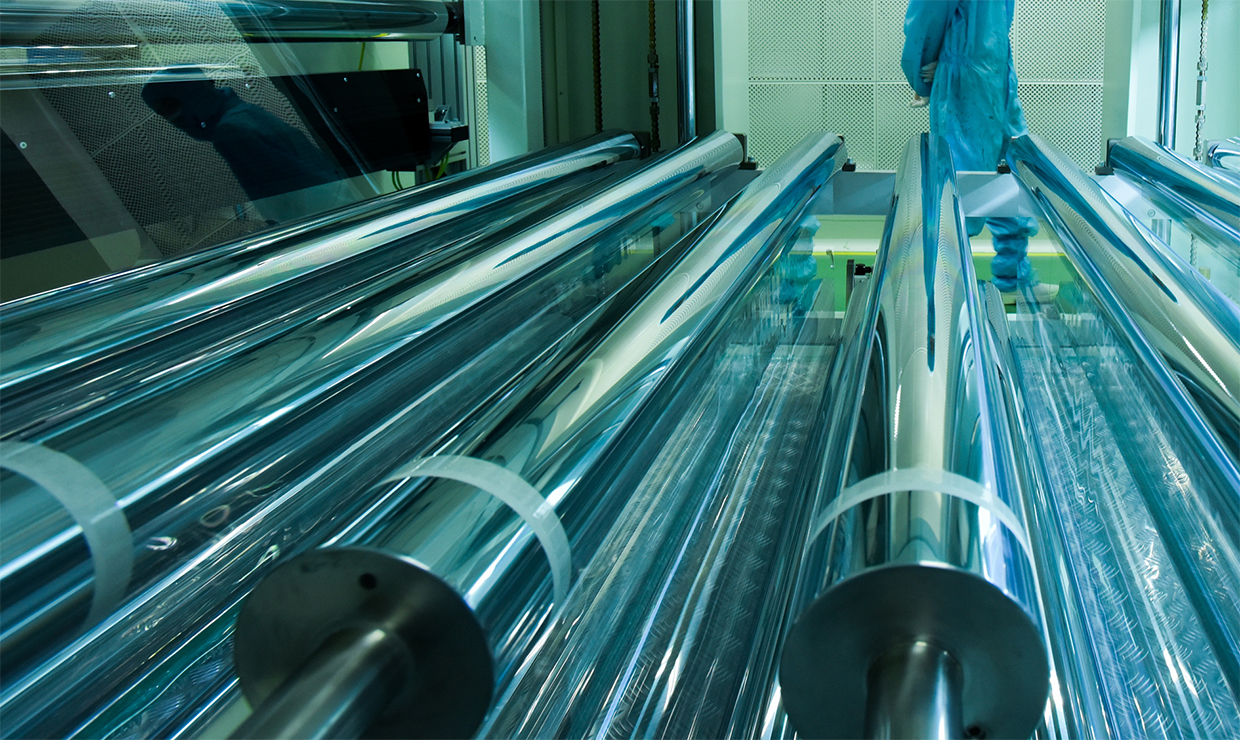 反射膜是一类功能性聚酯薄膜,已成为液晶显示的关键光学膜之一。它置于背光模组的最底层,其主要作用是将光源发出的光线反射至背光模组的出光方向,提高光线利用率,降低光损耗,以达到提高背光模组亮度,节能的目的。反射膜分为非涂布反射膜和涂布反射膜,可适用于不同的LED背光源中。目前公司反射膜产品型号有30多种,广泛应用于各个尺寸的液晶显示和照明等领域。